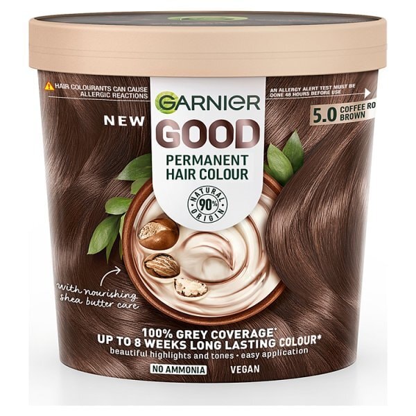Garnier Good Permanent Hair Dye in Coffee Roast Brown 5.0 offers a way to refresh your colour naturally. This dye features a rich formula created with 90% natural origin ingredients. It is designed to deliver maximum colour performance while leaving hair feeling rejuvenated and healthy.