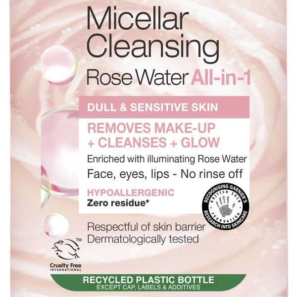 Discover Garnier Micellar Rose Water, an effective and easy-to-use product designed to remove makeup and restore your skin's natural glow. This single-step solution captures impurities while specifically brightening dull and sensitive skin types.