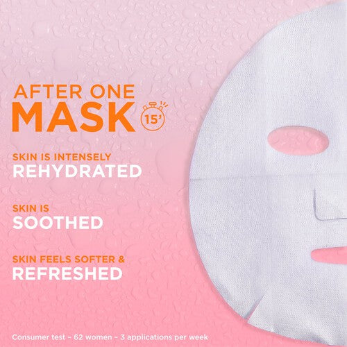 Achieve intensely rehydrated, refreshed skin in just 15 minutes with this powerful tissue mask treatment from Garnier. This mask is formulated to soothe sensitive skin while delivering significant moisture. It contains the equivalent of one full bottle of hydrating serum.