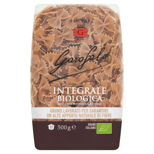 Garofalo Wholewheat Organic Farfalle is crafted using 100% organic durum wheat semolina. This process ensures that the natural bran, fibre, vitamins, and minerals remain intact within the pasta structure. These bow-tie shaped farfalle are an excellent addition to any balanced recipe.