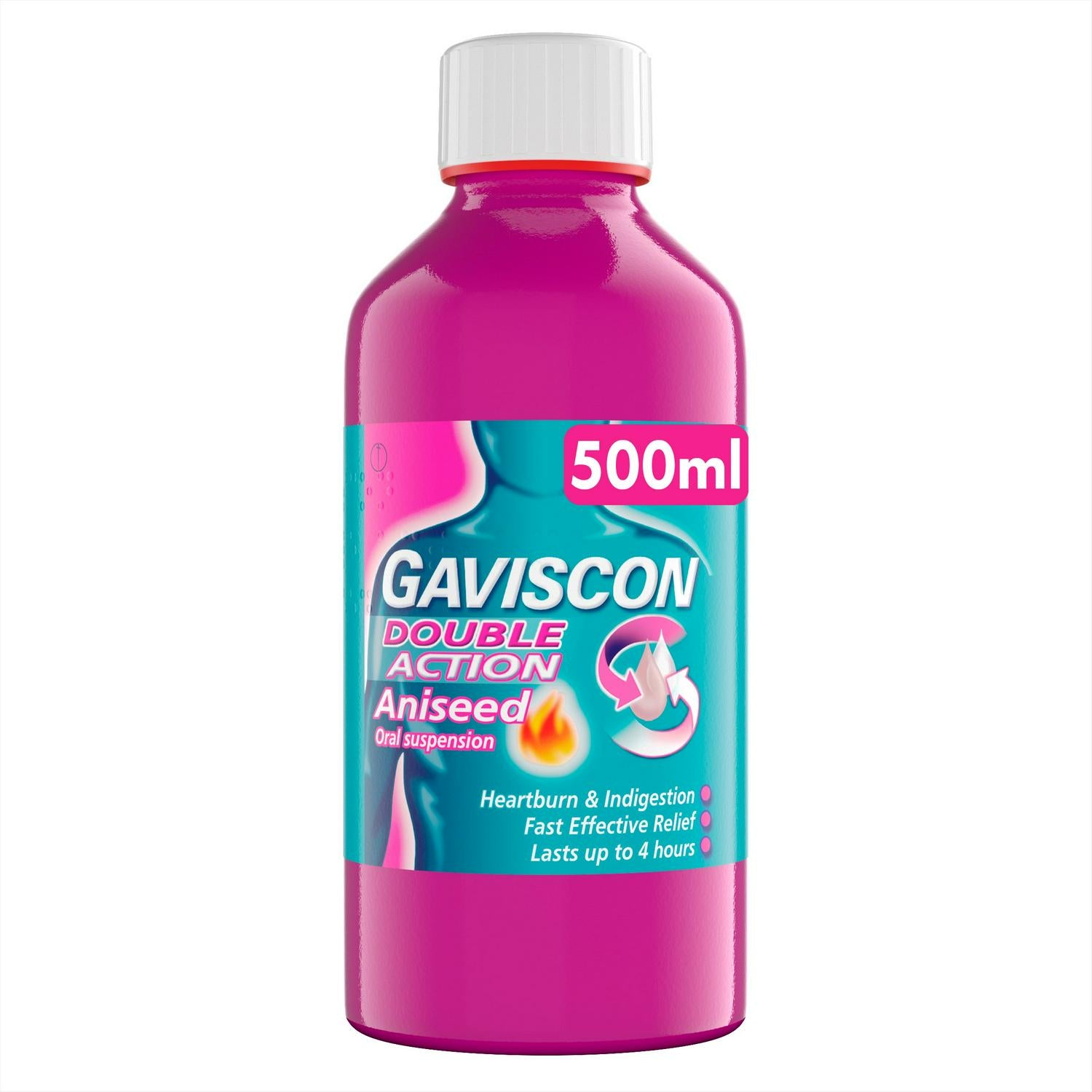 Gaviscon Double Action Aniseed Oral Suspension provides fast, effective relief from heartburn and indigestion symptoms. This liquid formulation works rapidly to soothe discomfort using key active ingredients. It is designed to offer protection for several hours after use, helping you feel better quickly.