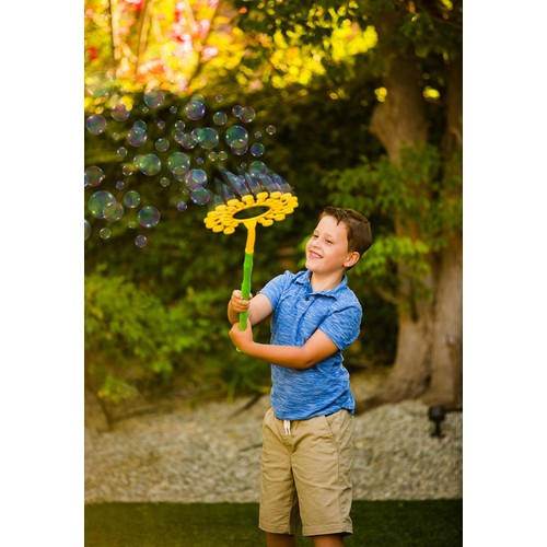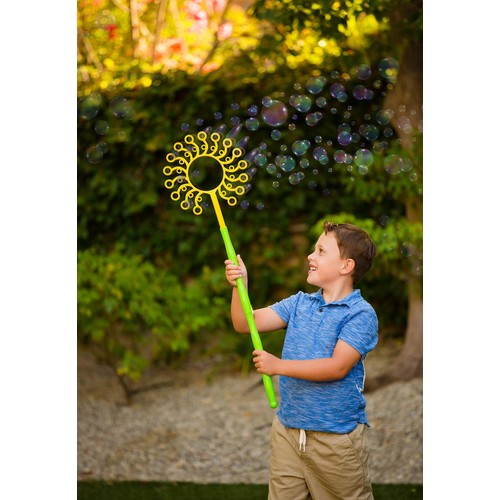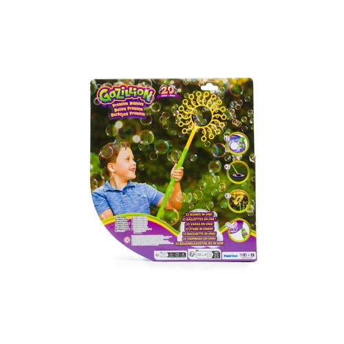Instantly create zillions of bubbles with the Gazillion Mega Zillion Wand. This unique toy features 33 integrated mini wands combined with a flexible 3ft handle, simplifying the creation of large bubble displays. Simply fill the provided tray, dip the wand fully, and wave it around to generate many bubbles simultaneously.