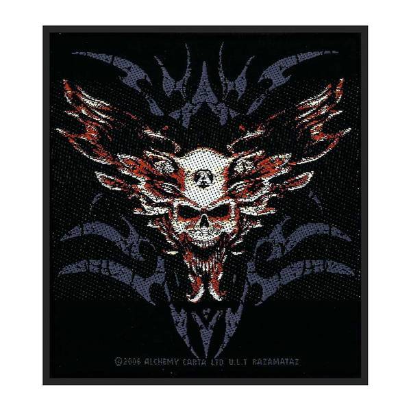 This woven patch showcases a striking skull and wings graphic, belonging to the Alchemy Magician stationery accessory range. It is expertly constructed from durable polyester fabric, providing a solid base for application. This distinct accessory allows for significant personal expression when added to jackets or bags.