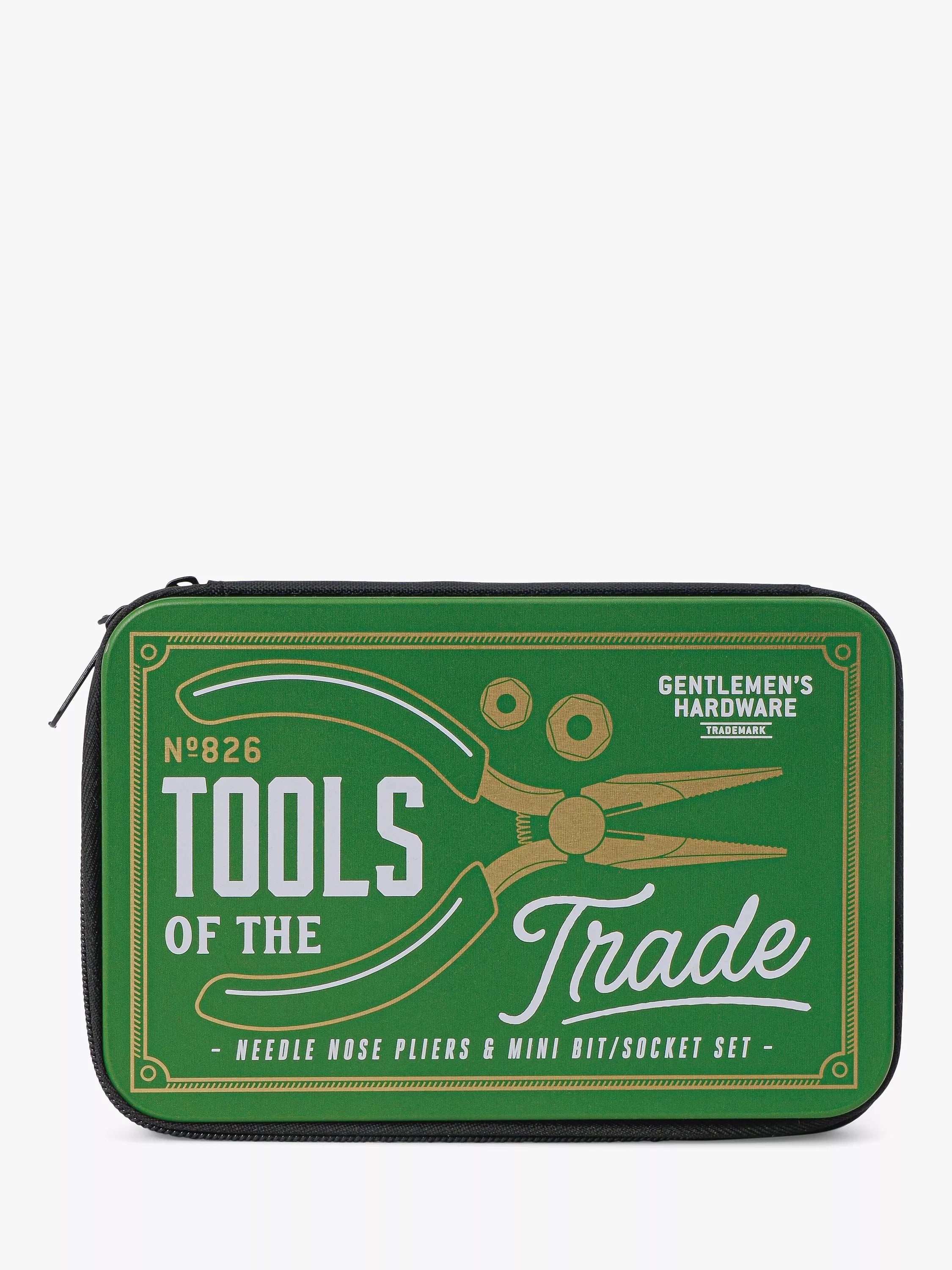 This Compact Tool Kit gets the job done with a 19-piece mini bit/socket set and pair of needle nose pliers. Store everything easily in the included tin pouch with fabric lining for easy transport and clever gifting.