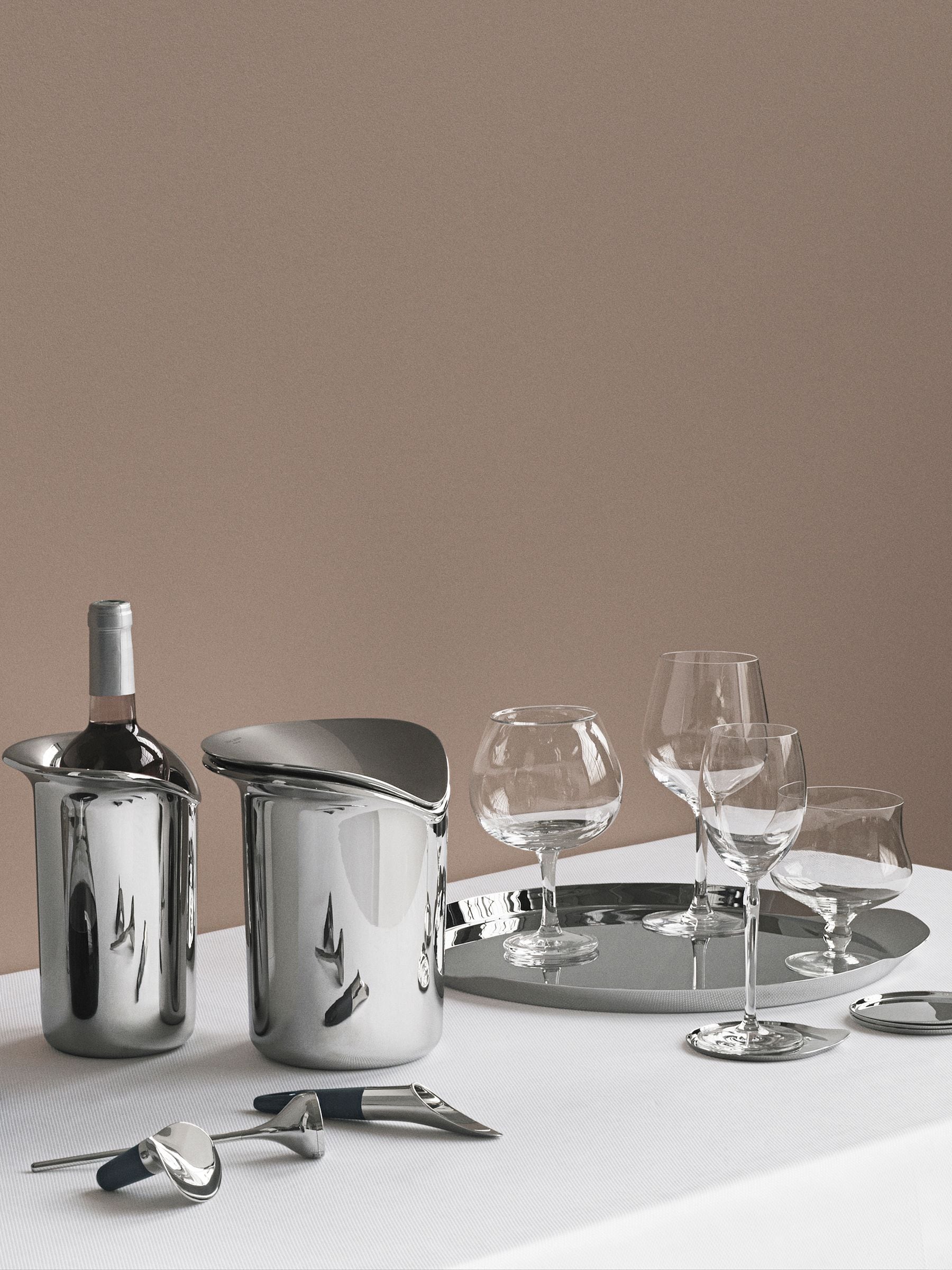 For Georg Jensen, he has developed a set of barware that has both form and function, and makes the perfect gift for any wine lover. The ice bucket and tongs are both crafted from mirror-polished stainless steel, which is practical for home entertaining but also highlights the sculptural shapes.