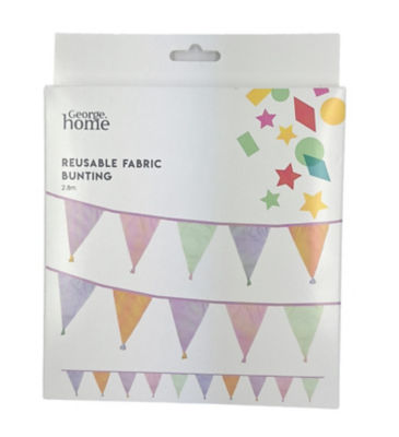 This George Home Fabric Bunting provides a cheerful, reusable decoration option for any celebration or event. Made from durable fabric, this bunting is designed to be stored easily after use. The set provides an approximate total hanging length of 2.8 metres, offering ample coverage for decorating party spaces.