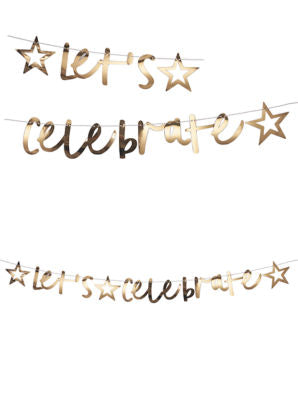 Pack of 1 garland. Gold foil colour letters and stars on a 2M string.