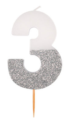 George Home Large Number Candle 3: Silver Glitter Bamboo Pick