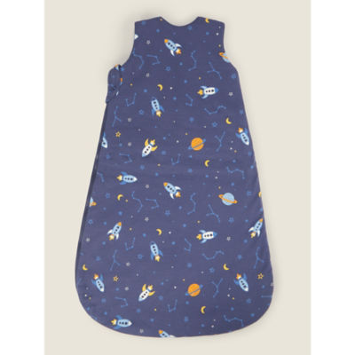 This George Home sleep bag features a smart navy design suitable for infants transitioning to toddler beds. It provides a certified 2.5 tog rating, ensuring your child remains comfortably warm during cooler nights. The combination of materials focuses on both softness and practical durability for regular use.
