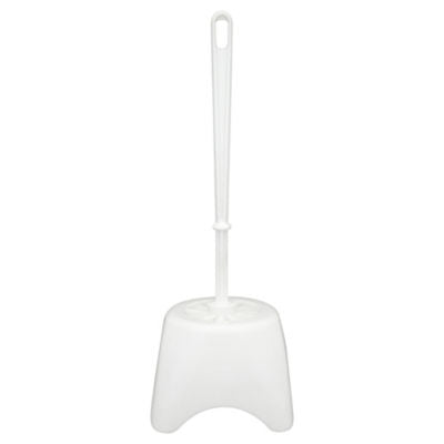 Keep your home essentials simple with this white, plastic toilet brush and holder.