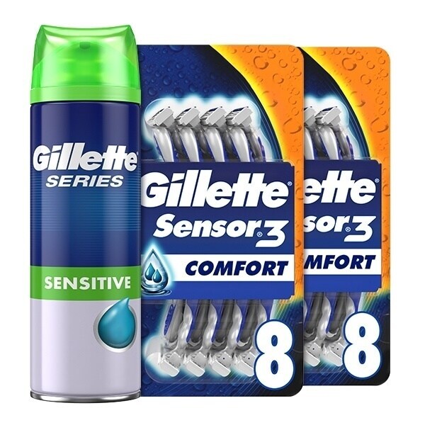 Read Morestock up on one years worth of gillette sensor3 disposable razors includes 16 gillette sensor3 mens disposable razors a gillette series sensitive shaving gel