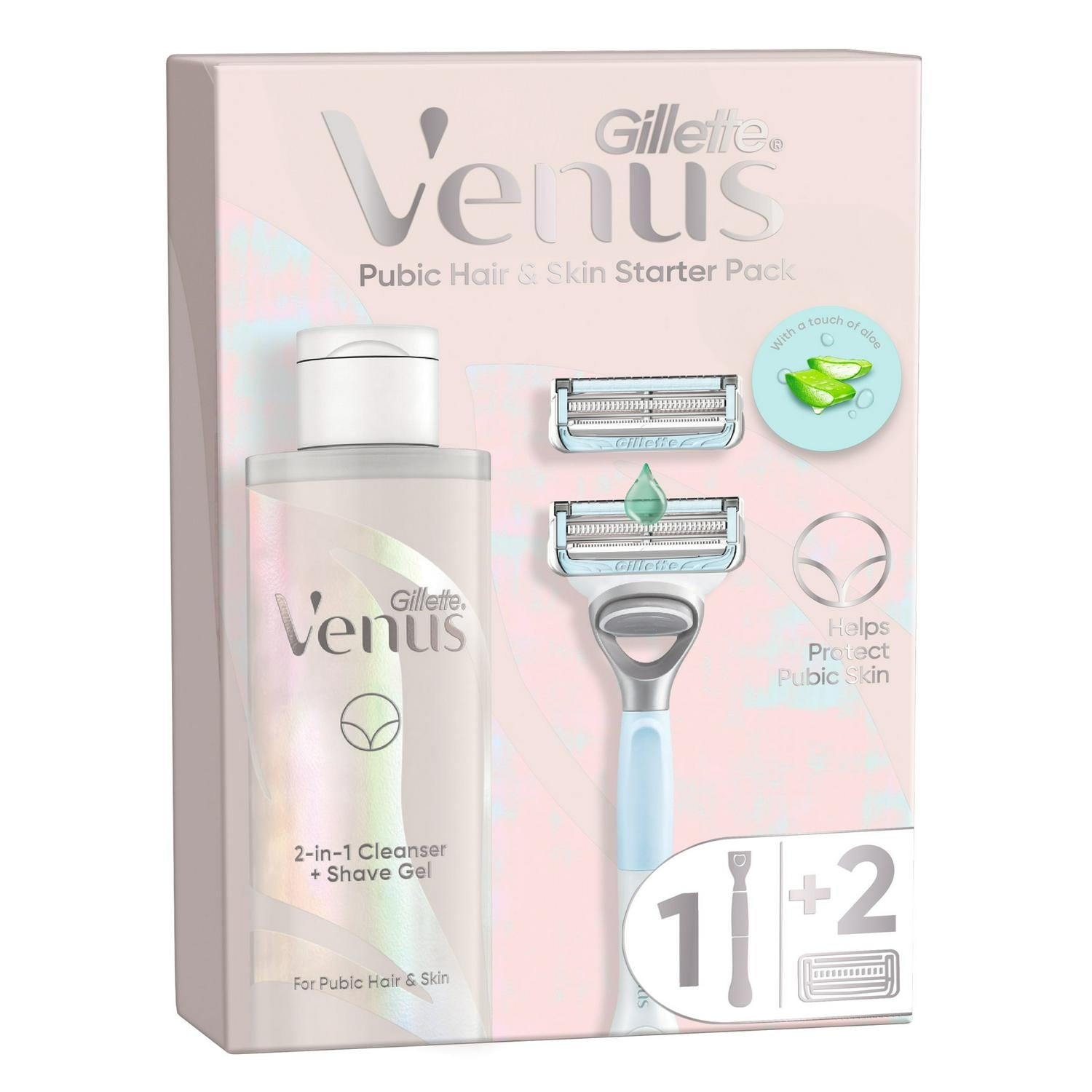 Venus’s pubic hair and skin razor is specifically designed to help protect pubic skin from shave irritation. It's advanced Irritation Defense Bar and optimally spaced blades allow the blades to cut hair while barely touching the skin. Also, the razor blade refills come equipped with a precision trimmer on the back of the blades to help with tricky areas. Venus’s 2-in-1 Cleanser + Shave Gel can be used during the shave to provide a protective layer of glide to help prevent shaving irritation, or daily as a gentle cleanser. Dermatologist- and gynecologist-tested. pH Balanced. Made without dyes and fragrance.
