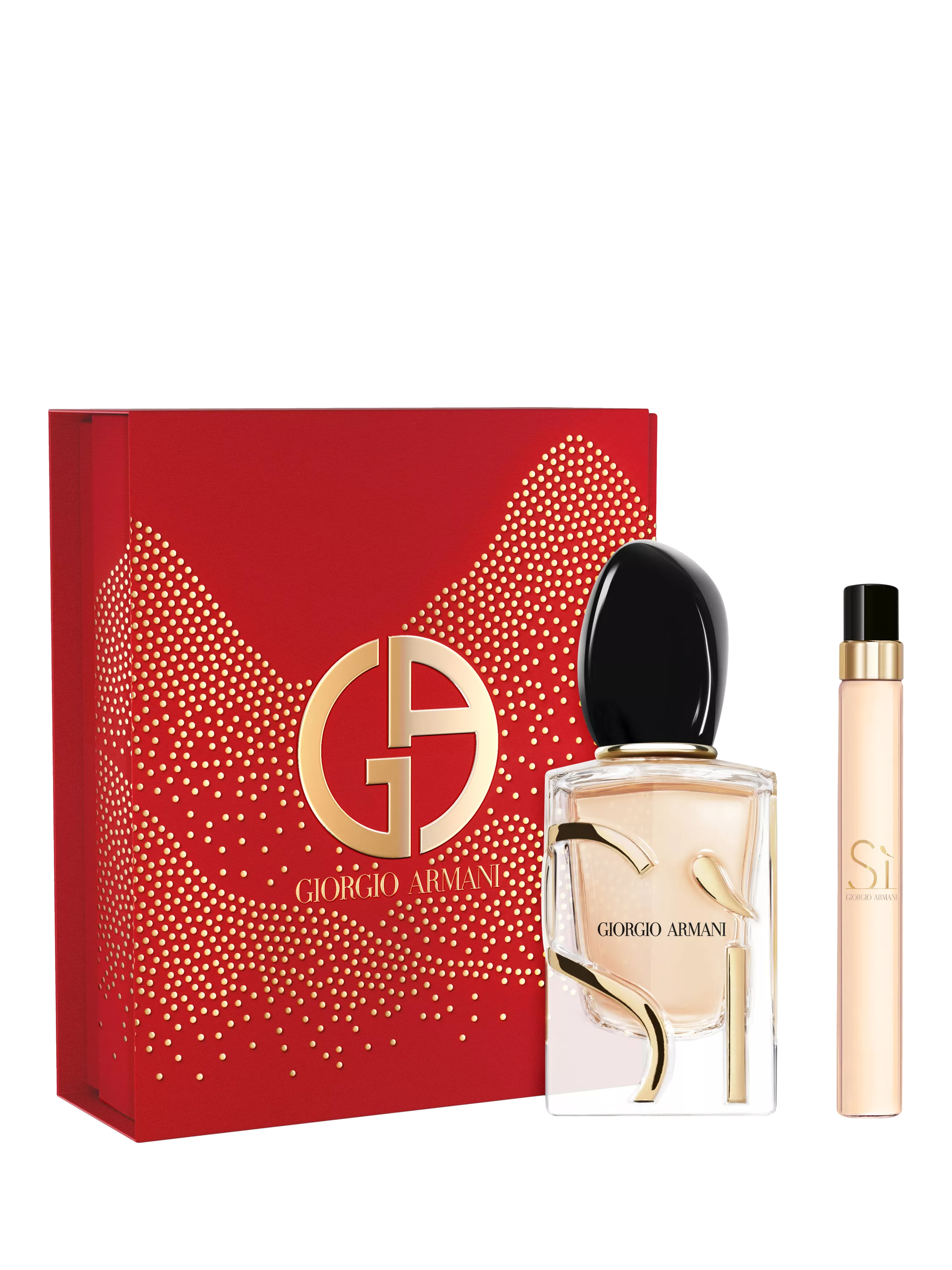 Treat her to Sì Eau de Parfum by Giorgio Armani. This Women's Gift Set is composed of a full-size and travel-size fragrance. Complete in a luxury Armani gift box, this is a perfect Christmas gift for your loved one.