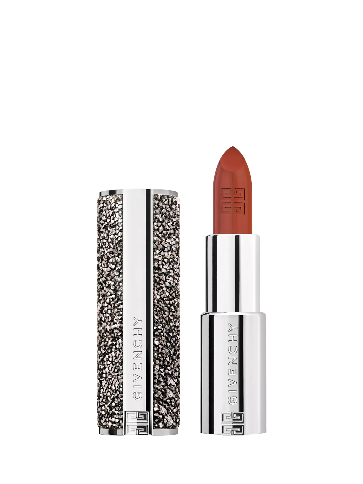 Le Rouge Interdit Intense Silk is adorned with an exclusive crystal-set case, inspired by the latest Givenchy Couture collections and starry winter nights. For the occasion, this dazzling case comprises the iconic shade N306 and the exclusive shade N502, a delicate sophisticated brown. A sparkling collection offering a bold and festive look.