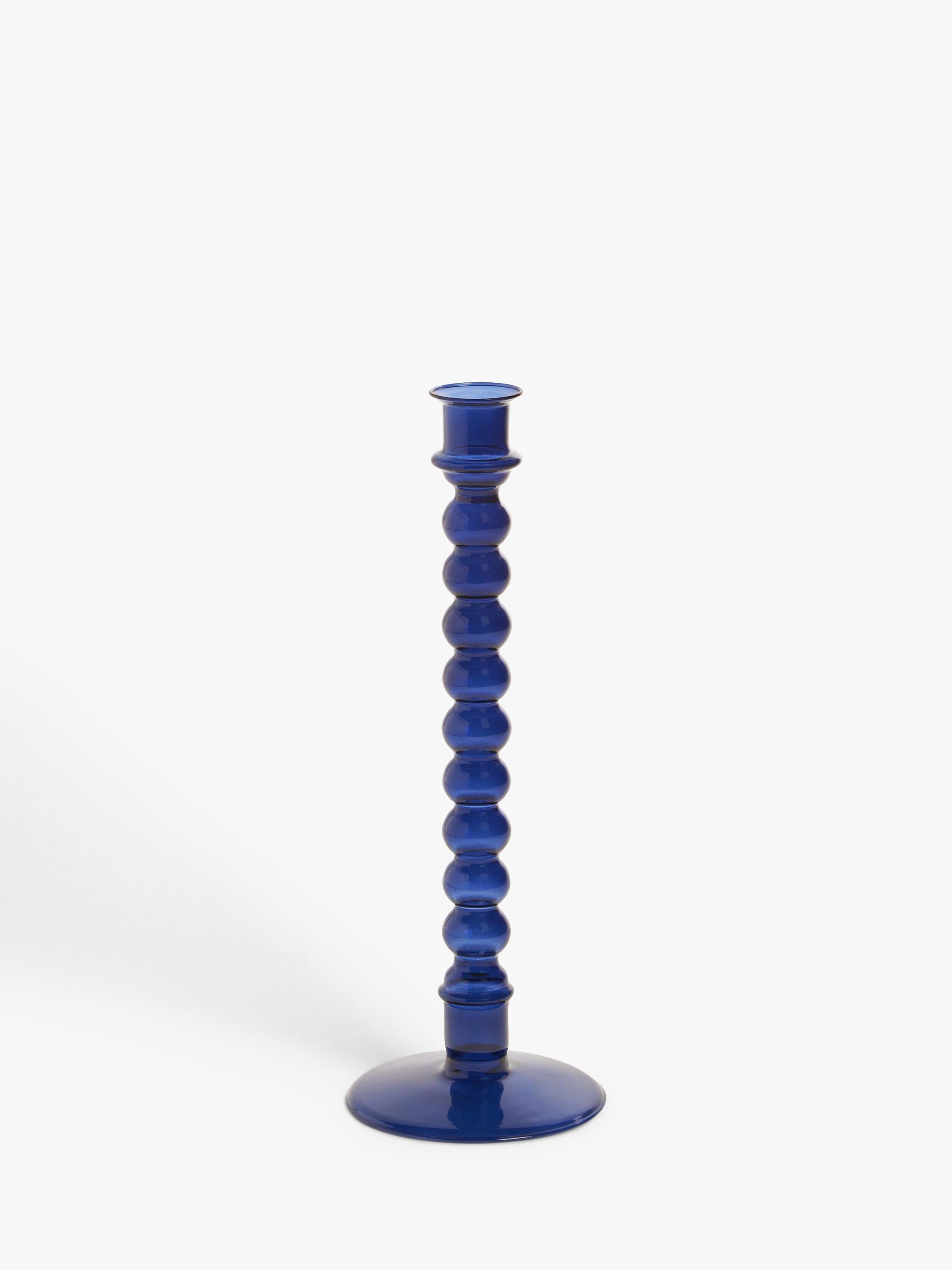 This John Lewis Glass Bobbin Candlestick Holder offers an elegant design perfect for showcasing taper candles upon any surface setting. Its clear glass construction ensures warm light refracts beautifully, adding subtle sophistication to dining tables or mantels. This piece remains a versatile accent suitable for traditional or modern décor settings.