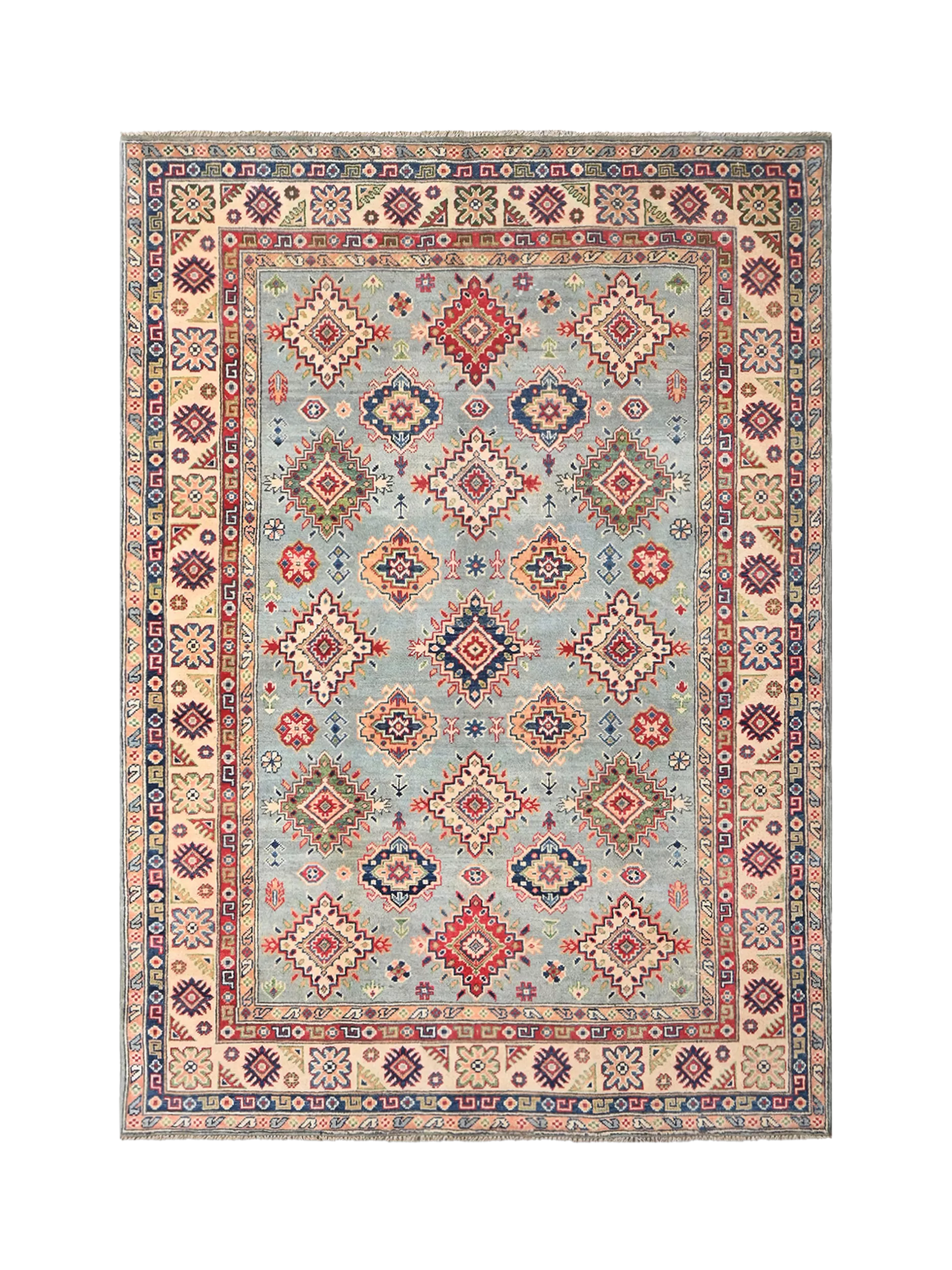 Kazak rugs were originally made in the Caucus during the 1800s. Now the Afghan Hazara people in Afghanistan are continuing to weave these hand knotted works of art. The new generation of weavers in Afghanistan have embraced the colours, patterns and workmanship of the traditional Kazak rug weavers from the Caucus.