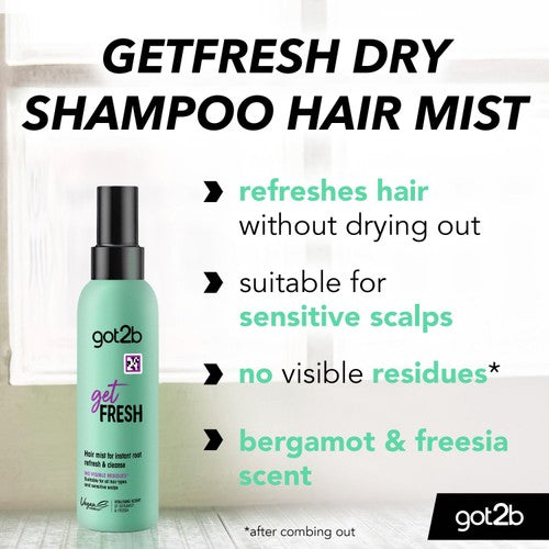 Read Moregot2b getFRESH Dry Shampoo Hair Mist - Need a hair wash but don’t have the time or energy? got2b’s getFRESH dry shampoo hair mist is here to save you. Enjoy 24h of anti-grease magic without drying out. With the got2b formula containing rice starch - also suitable for sensitive scalps - you no longer have to worry about residues*. Embrace refreshed hair, on your terms!