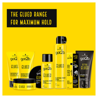 Product Information"got2b Glued Hairspray Blasting Freeze Spray 100ml is our iconic and best-selling hairspray. Designed for super strong hold for up to 72 hrs. Vegan and free from silicones, the formula is suitable for every hair type and has a beautiful citrus fragrance. This hairspray secures and sets your hair in seconds, freezing it in place until your next shampoo. - Strong hold hairspray for up to 72 hrs - Vegan and free from silicones - For all hair types - Secures hair in seconds and is easy to wash out - Our iconic best-selling range top tips: - For over the top spikes, spray heavily and twist tips - For that messy look, spray hair from roots to ends and massage with fingertips in a circular motion - Finish with a direct blast to cement your style - For maximum effect, use got2b Glued Water Resistant Spiking Gel in your wet hair and fix it with got2b Glued Blasting Freeze spray. For further information and free hair styling advice please call the Advisory Service on freephone: UK 0800 328 9214, consumer.advisory@henkel.com."