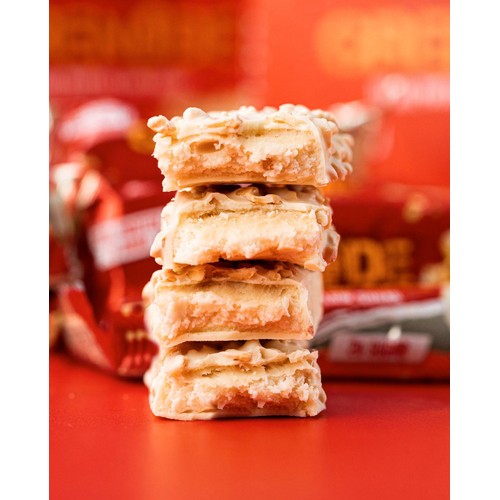 This triple-layered high-protein treat is loaded with delicious salted peanuts, soft nougat and smooth caramel, all wrapped in a white chocolate coating. Like all our high protein bars, it's jam-packed with protein and a yummy taste, without those unwanted sugars and carbs!