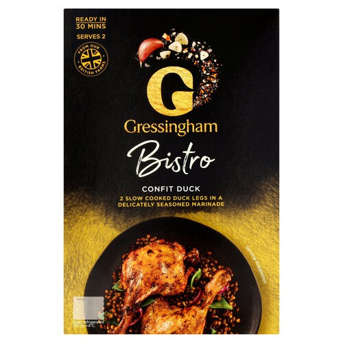 Enjoy restaurant-quality dining at home with these Gressingham Bistro Confit Duck Legs. Each pack contains two duck legs that have been slow-cooked until tender in a delicately seasoned marinade. These are an excellent choice when you require an impressive main course with minimal preparation time required.