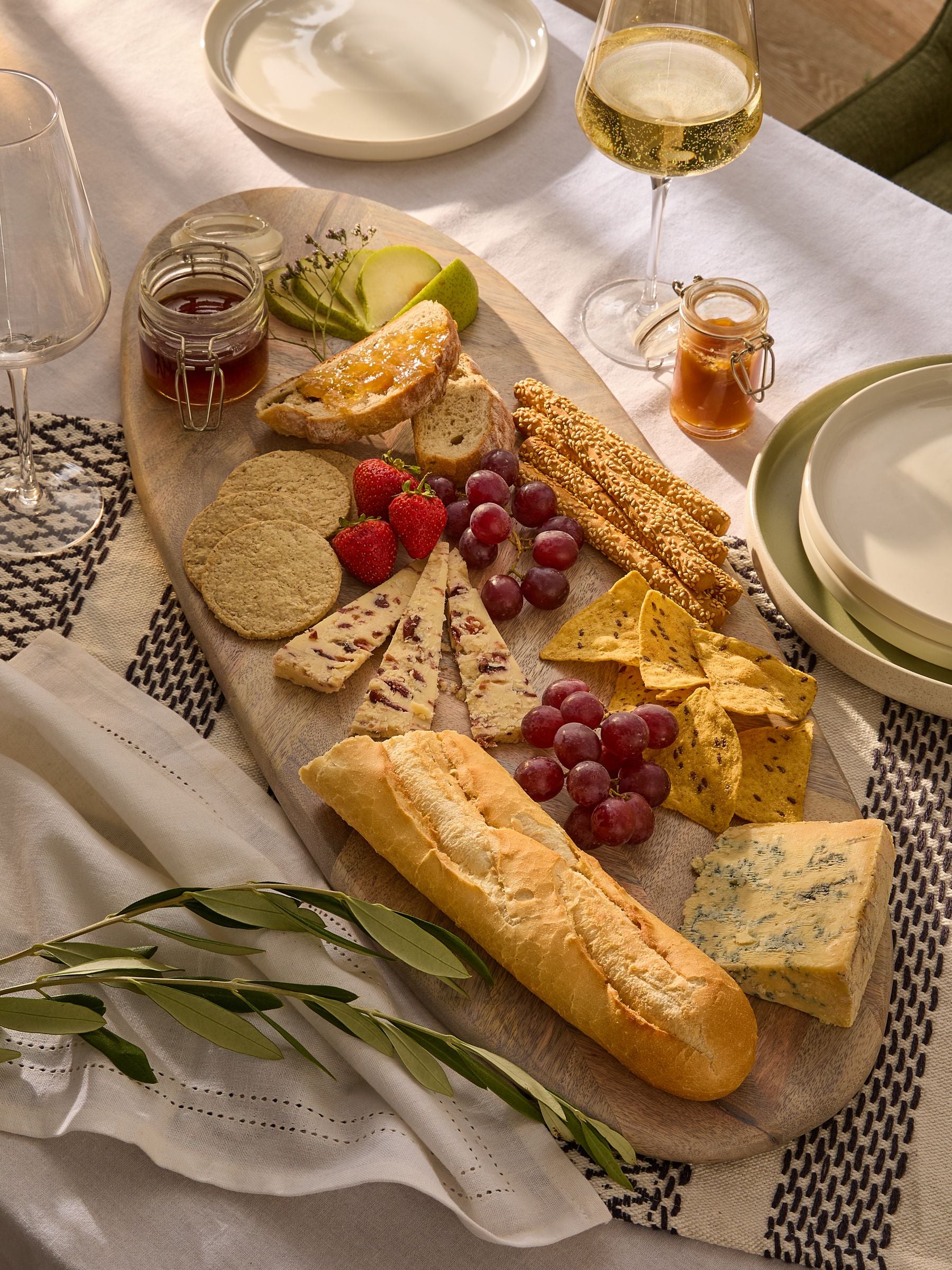 Our XXL Valencia serve board features light wood tones in an on-trend chevron design. The perfect way to create a centerpiece in your dining space, this board is great for serving up snacks and treats, ensuring you can host in style.