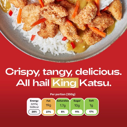 This GSN meal offers a better-for-you take on the classic Katsu favourite, delivering indulgent comfort with leaner nutrition. It features tender chicken breast coated in a crispy panko crumb, served alongside soft, flavour-soaking rice and a rich Japanese curry sauce. This high-protein meal keeps calories low without sacrificing the comforting crunch and warmth expected from a takeaway dish.