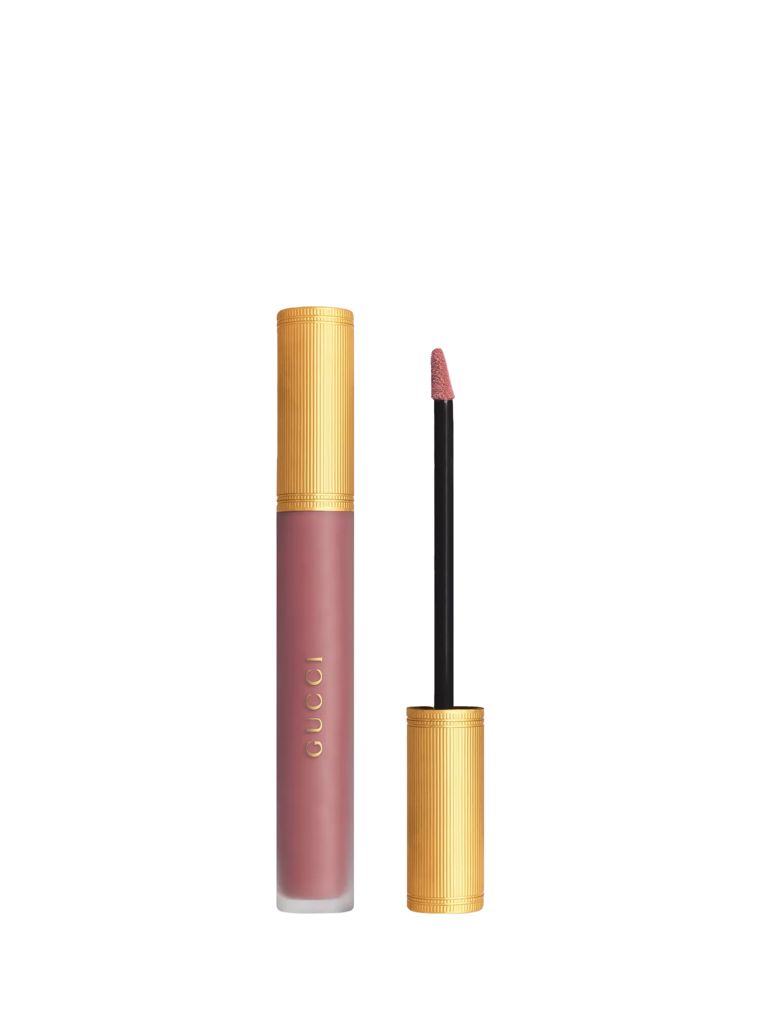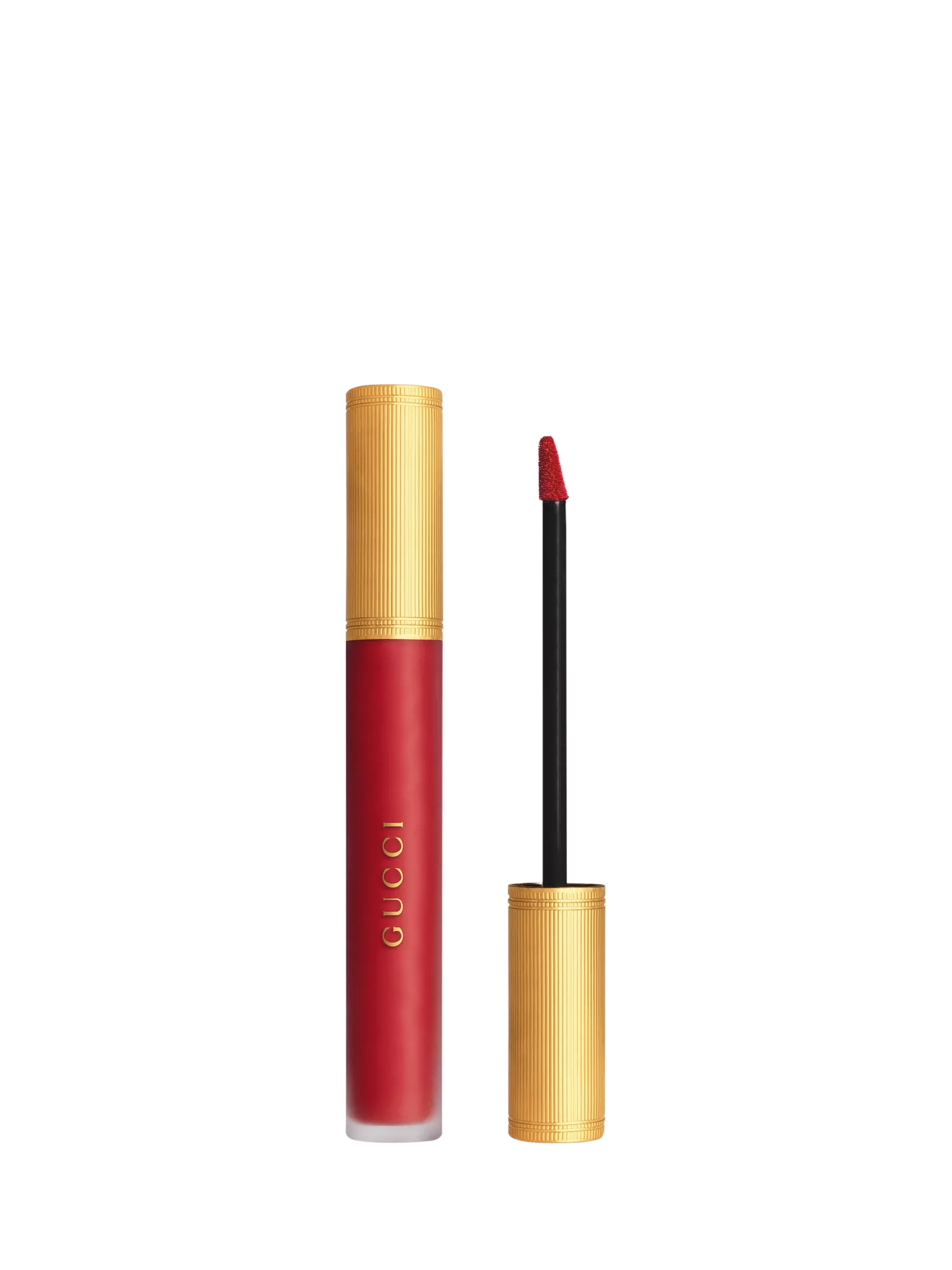 The formula and the application: Formulated with a caring combination of Black Rose oil and Hyaluronic Acid, and an infusion of Vitamin E, Rouge À Lèvres Liquide Matte Gucci lipstick smooths and cares for the lips. With a completely weightless texture, the highly pigmented colour is initially liquid and creamy before transforming to a powdery matte texture for a lightweight feeling. A soft and slanted applicator ensures the lipstick glides easily on. Entirely transfer-proof, it is a matte lipstick designed with the freedom to build and blend, whether the desired look is a soft blur or a defined finish.