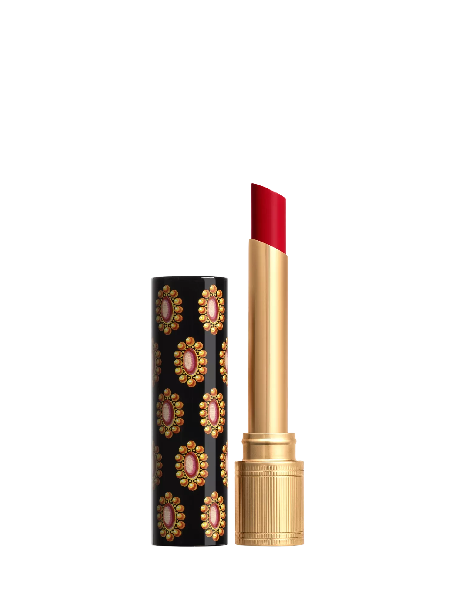 Beautiful shine and glowing colour combine in vibrant hues of reds, pinks, corals and natural shades. The design was given a full makeover, in order to represent and celebrate the uniqueness of Rouge de Beauté Brillant High-Shine Lipstick. Encased within an elegant slim gold bullet, the precious outer lid is wrapped in a unique black and gold print: inspired by vintage brooches, the choice of this particular pattern bears witness once again to the Creative Director’s passion for collectable objects of desire.