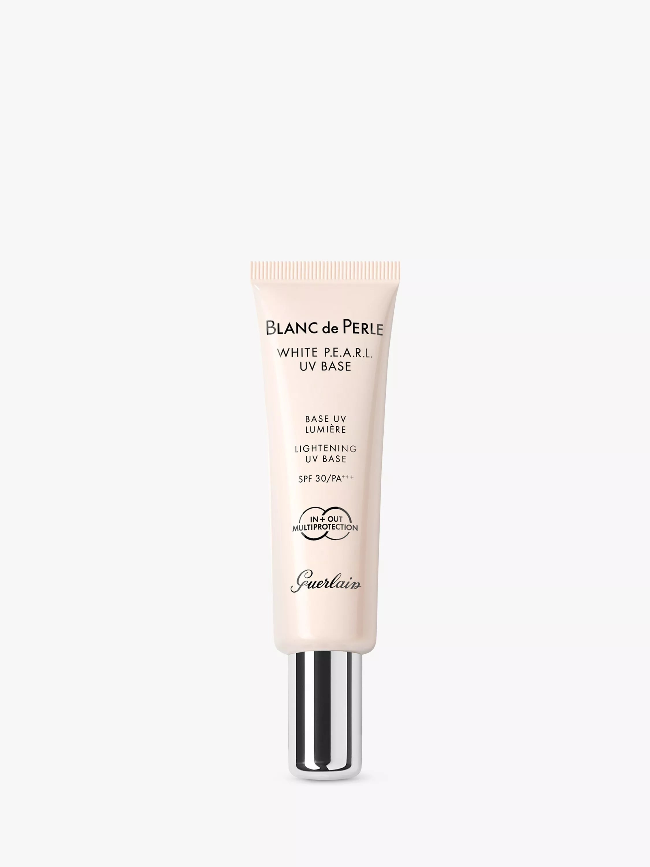 Reveal your radiant best with Guerlain Blanc de Perle Lightening UV Base SPF 30/PA+++. This subtly tinted base brightens your complexion, minimizes imperfections, and provides essential sun protection. It's the perfect addition to your daily beauty routine for a naturally luminous look.