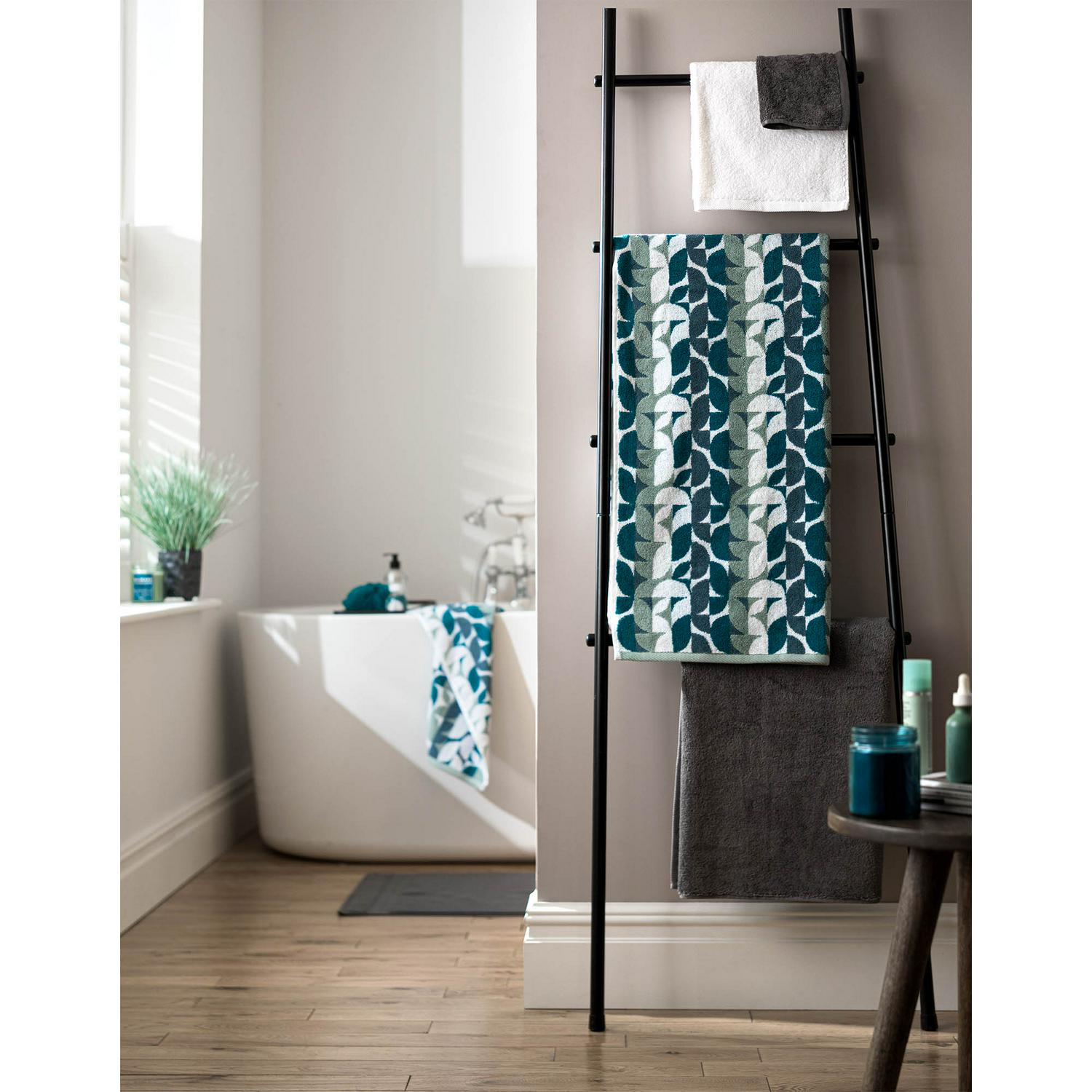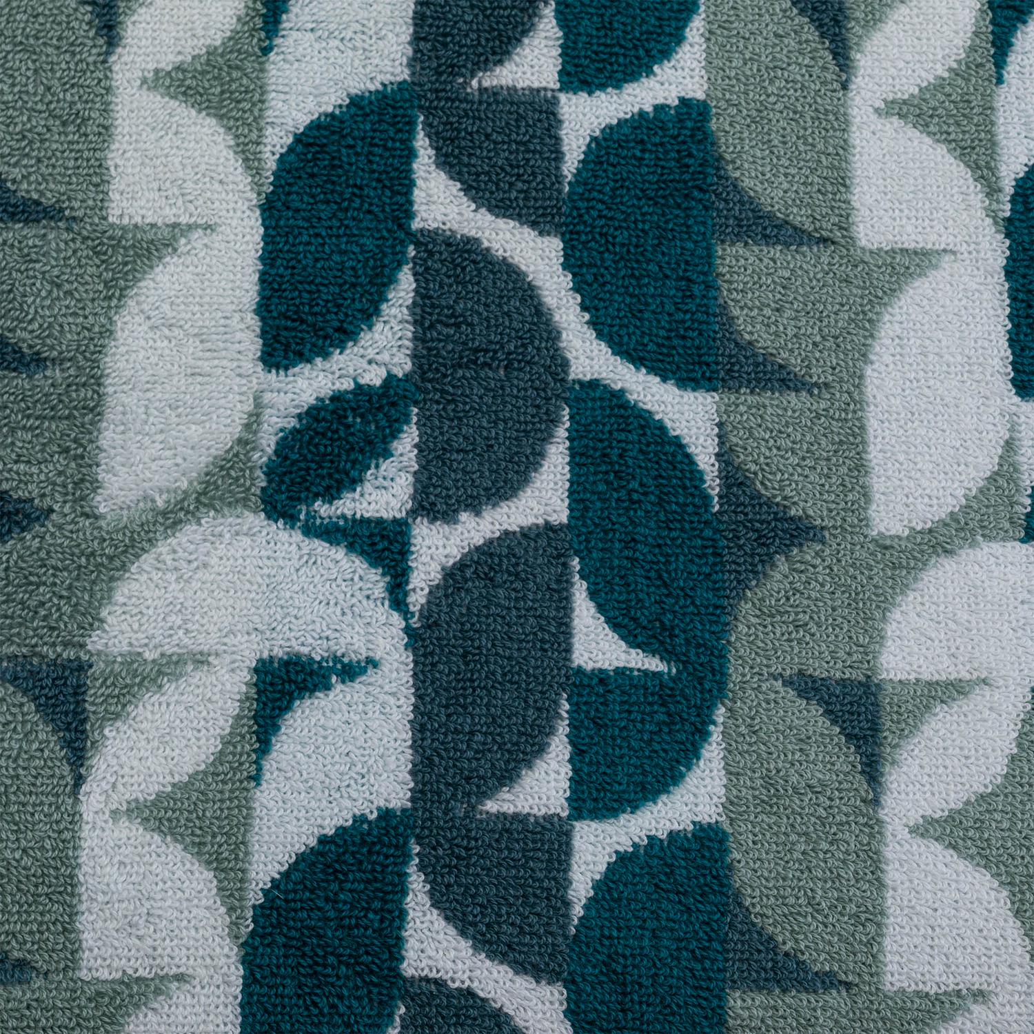 This geometric cotton bath towel collection balances practical function with modern aesthetic appeal.
