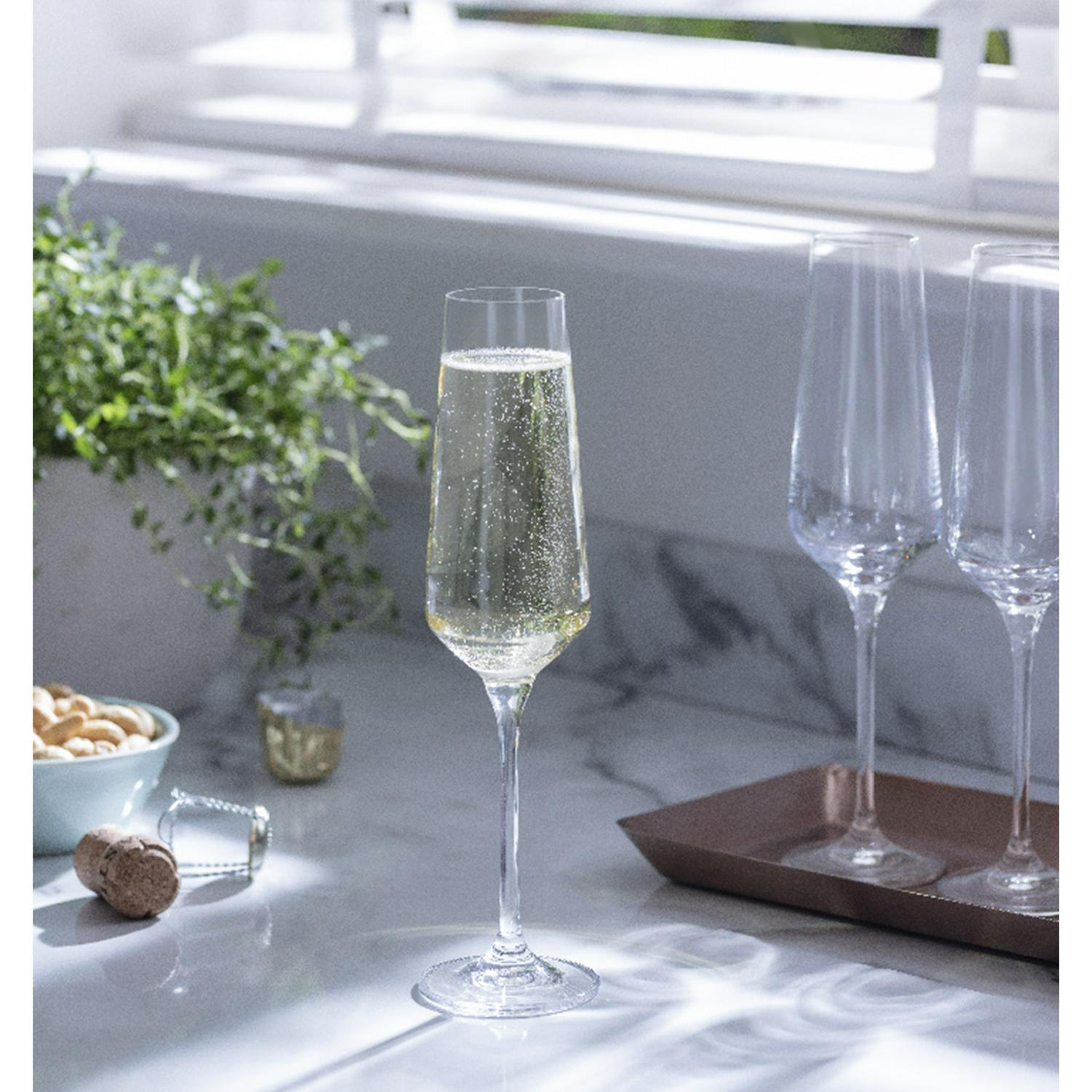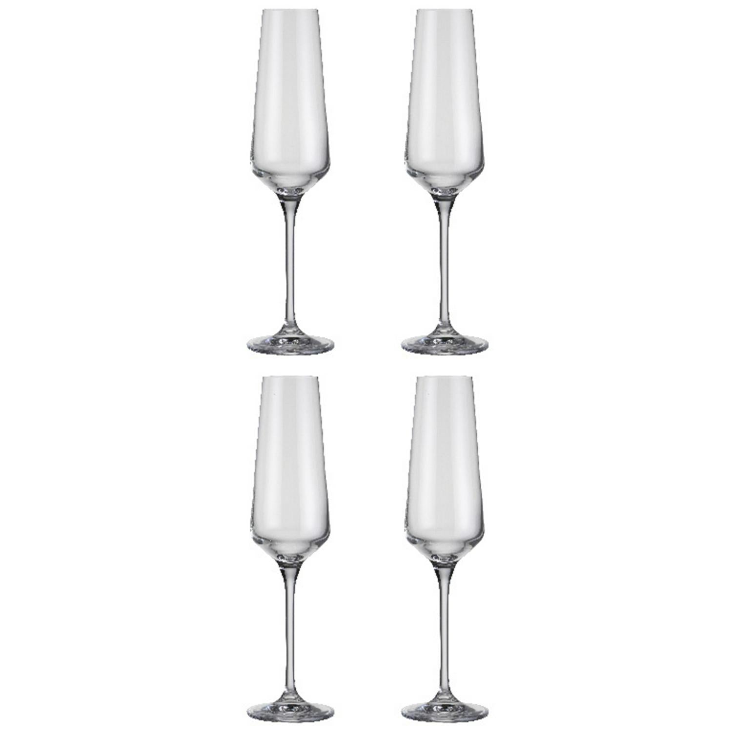 Toast any occasion with this elegant set of four Habitat Dalston champagne flutes. These crystalline glasses feature a tall, tapered design engineered to encourage bubbles to rise gracefully to the top. Their slender stems provide a comfortable and refined hold for enjoying your drink.