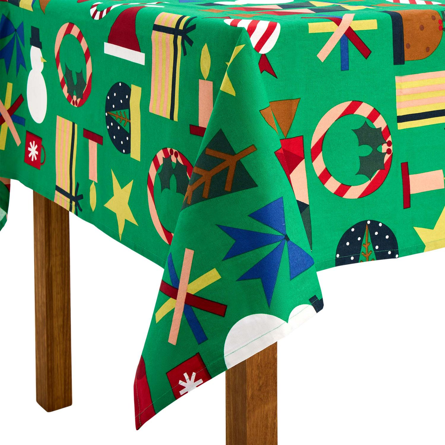Read MoreBright and festive. This tablecloth is dotted with yuletide favourites. From candy canes to wreaths, it’s a fun way to bring a little Christmas spirit to the table. With a PU coating, it's wipe clean for fuss-free feasts.