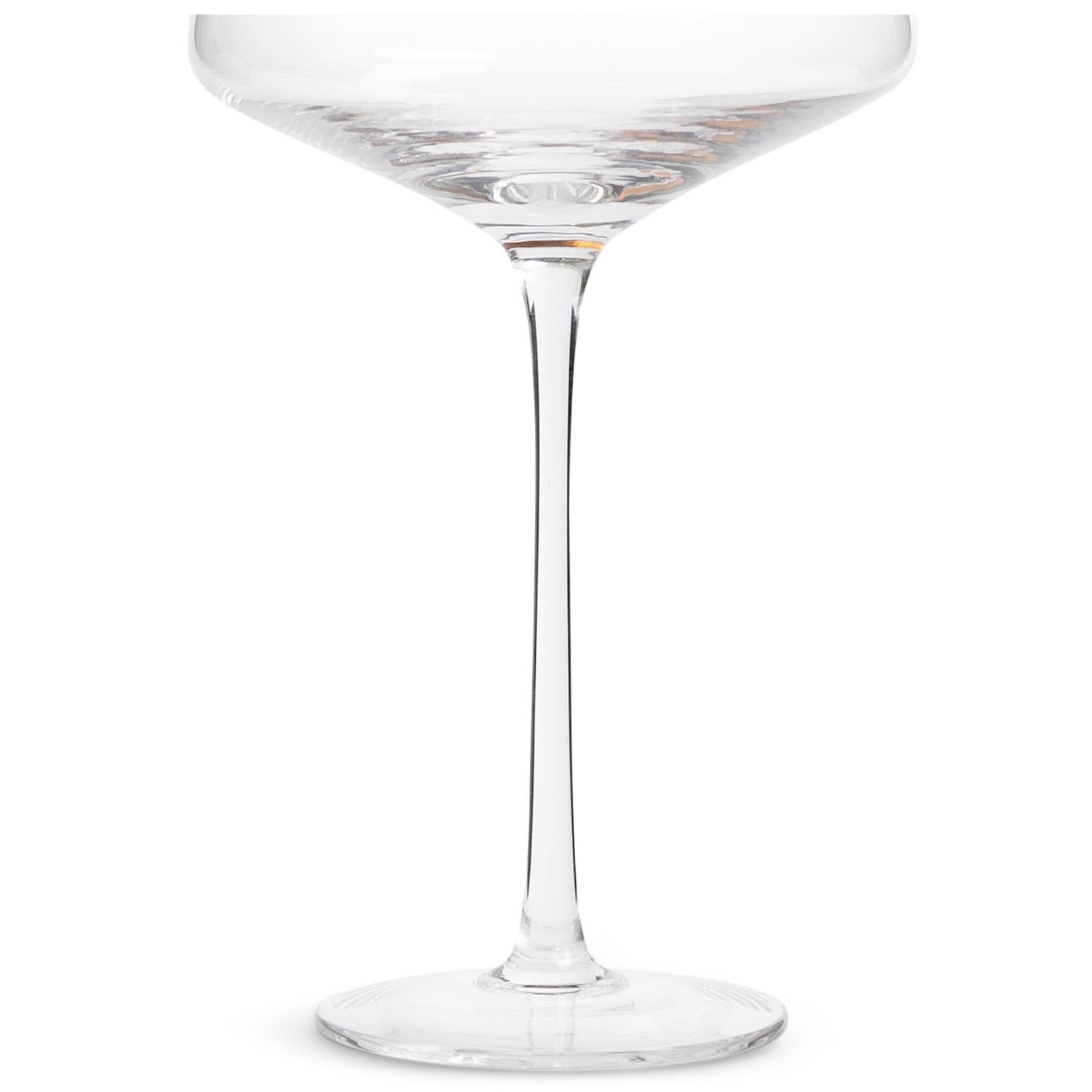 This Habitat champagne coupe features a slim, long stem and a wide bowl design for an elegant presentation. It is ideal for serving party fizz or traditional sparkling wine at any occasion.