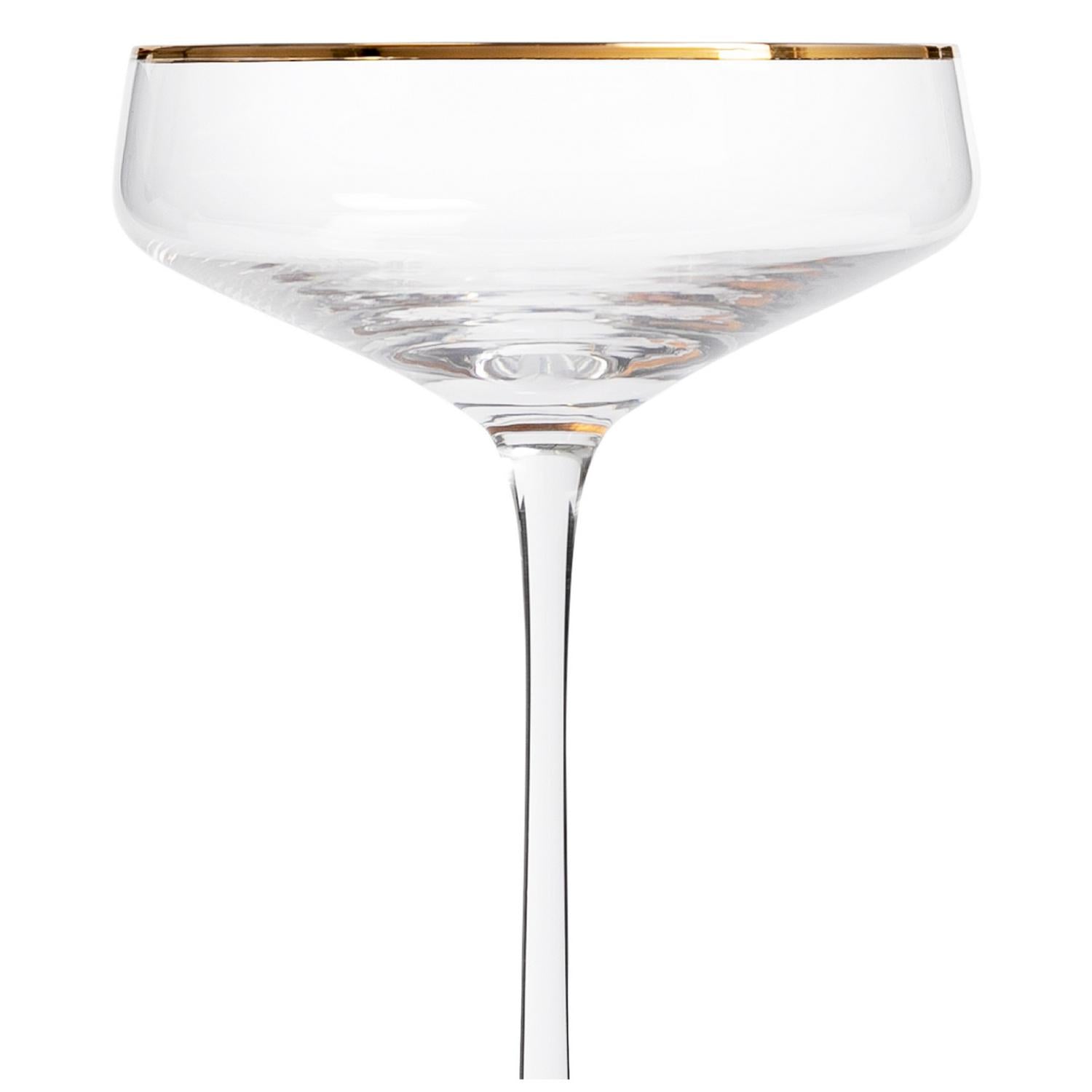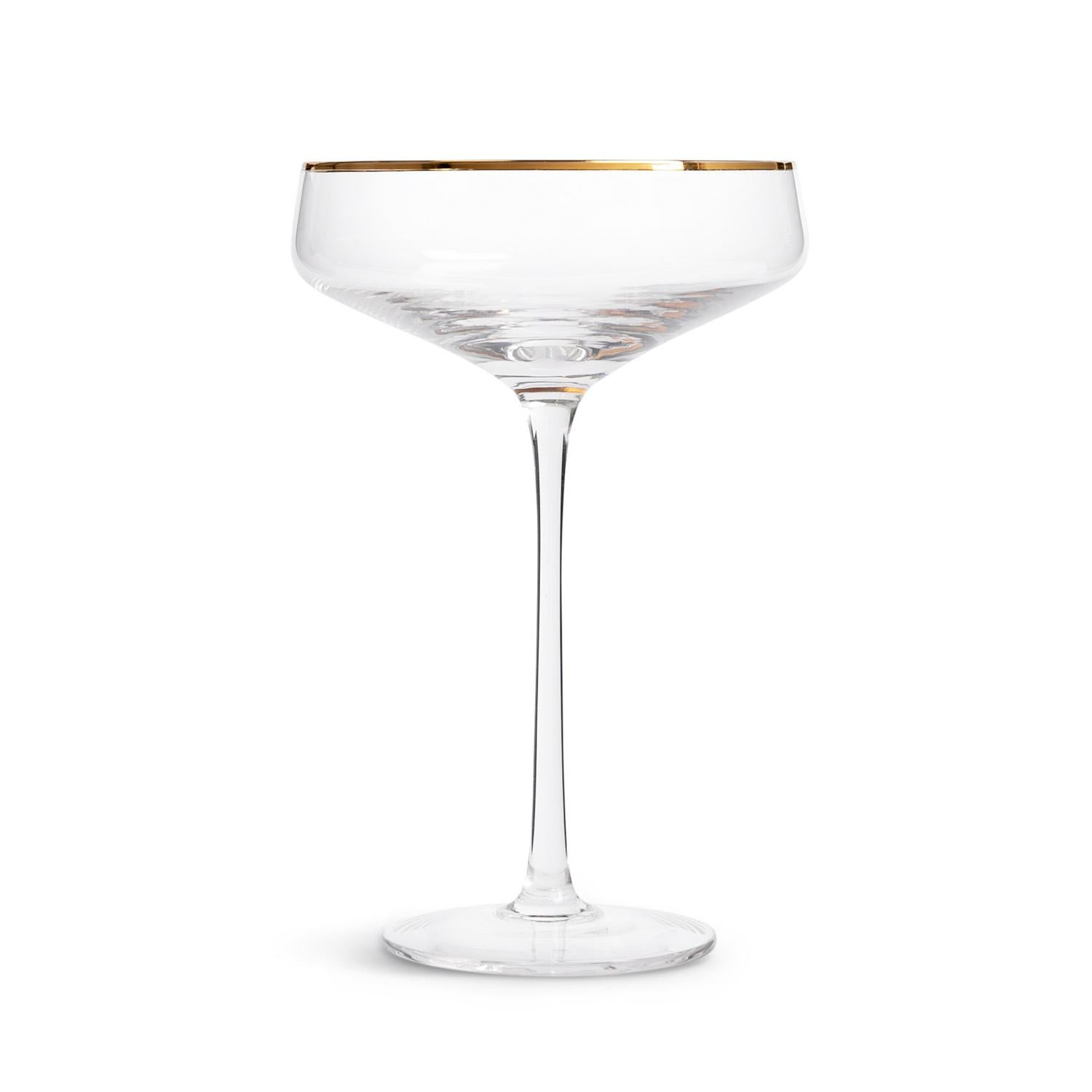 Read MoreChin, chin. Our slim, long stemmed and wide bowled champagne coupe oozes elegance. Fantastic for party fizz or some classic bubbly, the chic gold rim makes it a pleasure to take a sip. Serve up some delicious canapés alongside and prepare to dazzle friends and family. Grab a glass and let’s celebrate.