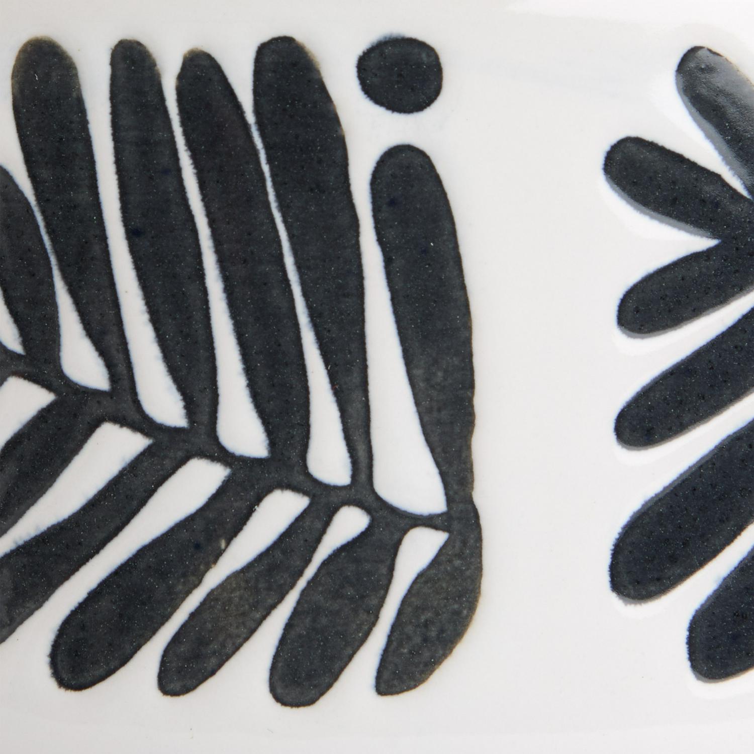 This Habitat cereal bowl features a thoroughly modern monochrome finish with a bold, stylistic leaf pattern. Its design takes inspiration from contemporary Scandi aesthetics, making it a stunning addition to any table setting. Crafted from durable stoneware, this piece balances visual impact with practical everyday use.