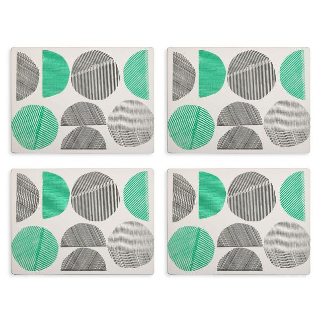 Set a modern tone for any meal setting with this smart set of four placemats from Habitat. They feature a scandi-inspired geometric pattern defined by linear circles, offering a minimal yet colourful appearance. The durable cork-backed design provides necessary protection for your wooden surfaces during gatherings.