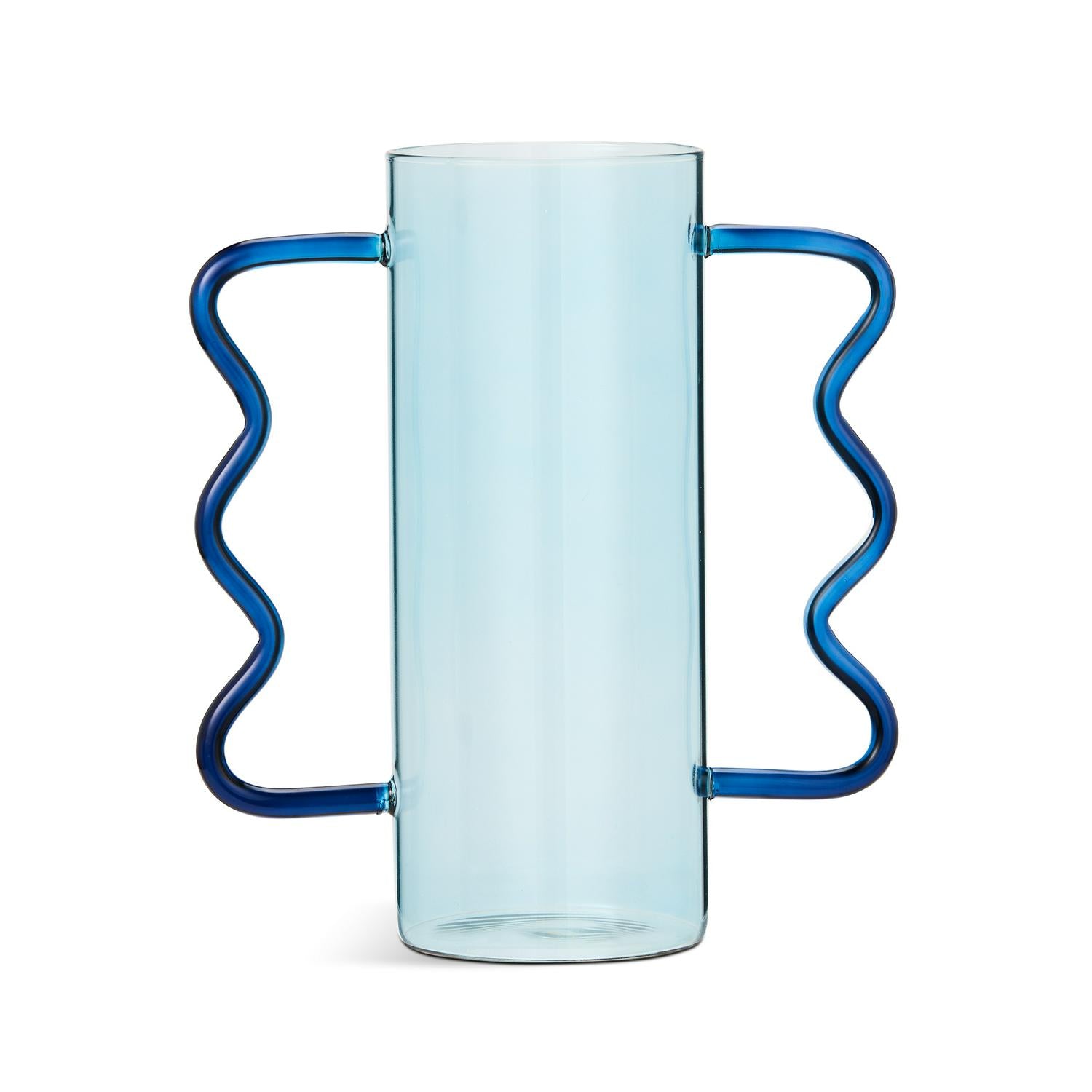 Read MoreWith plenty of individual style, this vibrant vase with its wiggly feature handles makes a perfect home for grasses or faux blooms. Crafted from blue borosilicate glass, it offers a modern and dramatic aesthetic. Top notch styling piece.