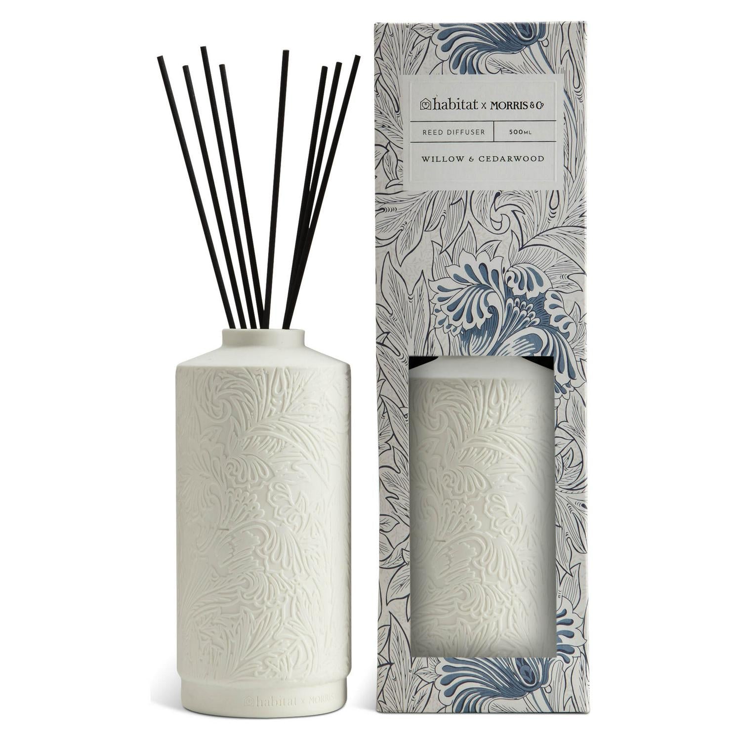Read MoreWonderfully aromatic and beautifully presented from Habitat x Morris & Co. This reed diffuser is designed to perfume a room. First the scent. Warm woody base tones mingle with notes of aromatic spices and gentle florals. Now the look. The fragrance is captured in a tall cream ceramic holder etched with a distinguished William Morris pattern.