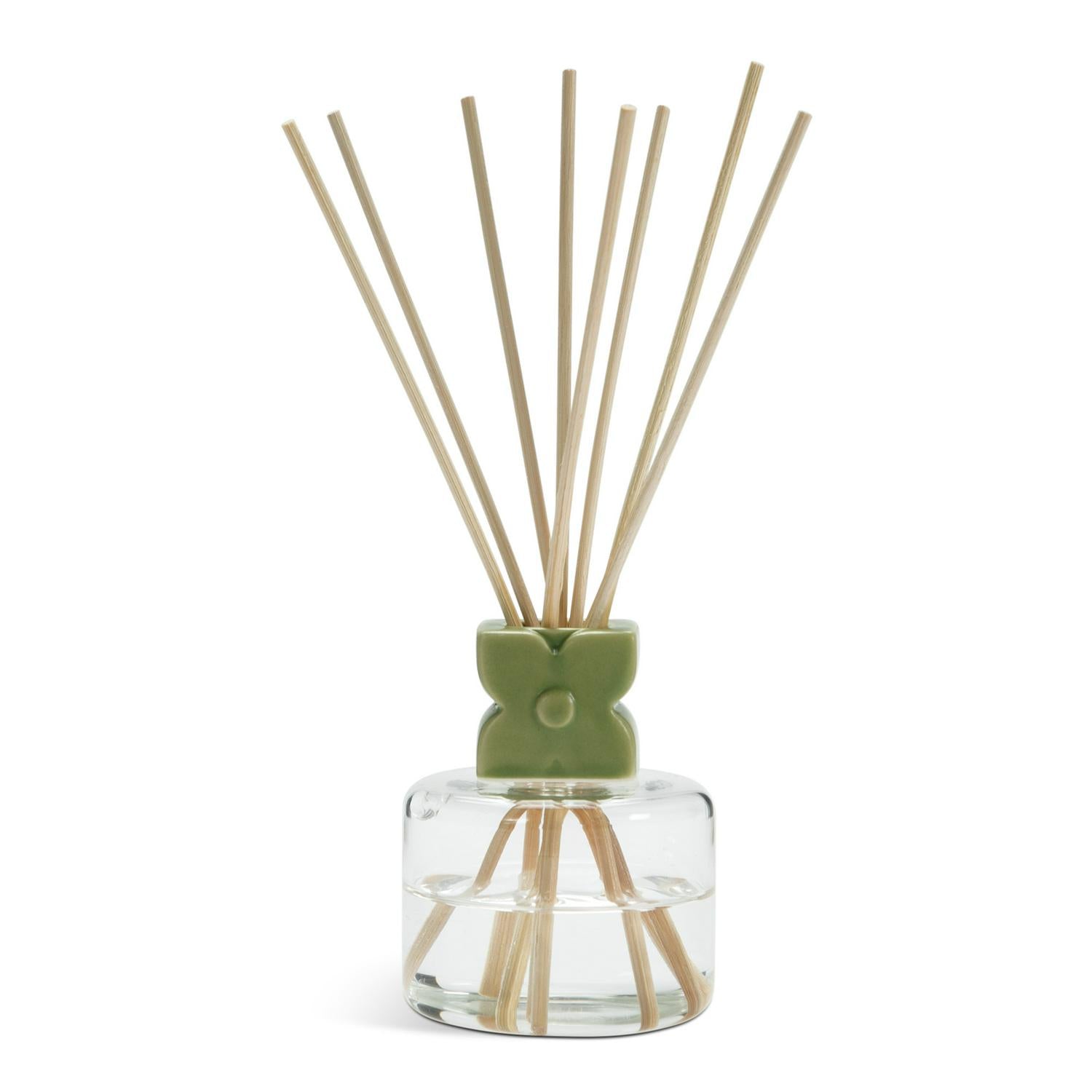 Read MoreBring home the scent of Oak and Geranium with this designer room diffuser with base notes of calming lavender and green tea. The ceramic green neck showcases the Scion Prairie pattern. A fashionable fragrant way to perfume a room.
