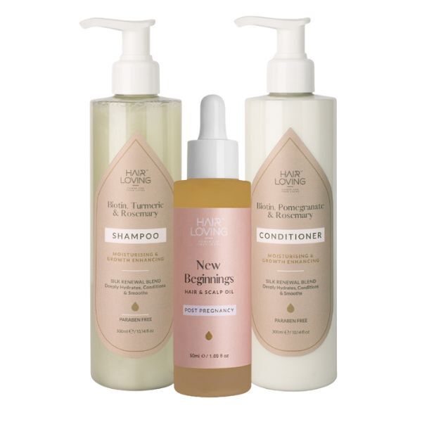 Shampoo - Aqua, Sodium Myreth Sulphate, Cocamidopropyl Betaine, Parfum, Polyquaternium-7, Aloe barbadensis leaf juice, Coco-Glucoside, Glycol Distearate, Glycerin, Panthenol, Vaccinium Myrtillus (Bilberry) Fruit Extract, Argania Spinosa (Argan) Kernel Oil, Guar Hydroxypropyltrimonium Chloride, Sclerocarya, Birrea (Marula) Seed Oil, Benzyl Alcohol, Phenoxyethanol, Helianthus Annuus Seed Oil, Saccharum Officinarum (Sugar Cane) Extract, Potassium Sorbate, Rosmarinus Officinalis (Rosemary) Leaf Extract, Citrus Aurantium Dulcis (Orange) Fruit Extract, Citrus Limon (Lemon) Fruit Extract, Acer Saccharum (Sugar Maple) Extract, Biotin, Curcuma Root (Turmeric) Extract, Citric Acid. Conditioner - Aqua, Cetearyl Alcohol, Cocos Nucifera (Coconut) Oil, Cetyl Alcohol, Polyquaternium-7, Behentrimonium Methosulfate, Aloe barbadensis leaf juice, Cetrimonium Chloride, Parfum, Sclerocarya Birrea (Marula) Seed Oil, Panthenol, Vaccinium Myrtillus (Bilberry) Fruit Extract, Argania Spinosa (Argan) Kernel Oil, Guar Hydroxypropyltrimonium Chloride, Benzyl Alcohol, Phenoxyethanol, Citrus Aurantium Dulcis (Orange) Peel Oil, Helianthus Annuus Seed Oil, Saccharum Officinarum (Sugar Cane) Extract, Punica Granatum (Pomegranate) Seed Oil, Potassium Sorbate, Rosmarinus Officinalis (Rosemary) Leaf Extract, Citrus Aurantium Dulcis (Orange) Fruit Extract, Citrus Limon (Lemon) Fruit Extract, Acer Saccharum (Sugar Maple) Extract, Biotin, Citric Acid. Post Pregnancy Hair Oil - Prunus Amygdalus Dulcis (Almond Oil), Rinisus Comunis Seed Oil (Castor Oil), Vitis Vinifera (Grapeseed Oil), Persea Gratissima (Avocado Oil), Tricum Vulgare Germ Oil, Tocopherol (vitamin E Oil)
