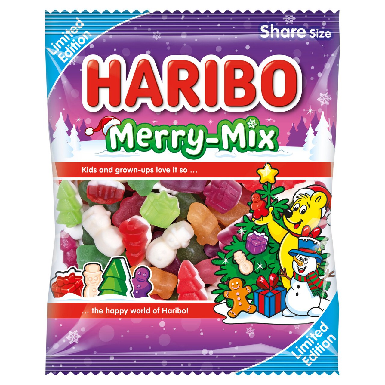 Haribo Merry Mix is a limited edition collection of festive gummy sweets perfect for enjoying throughout the holiday season. This share-size bag contains a fun, varied assortment of shapes and flavour combinations designed for everyone. The mix blends cheerful Christmas characters with soft textures for a delightful experience.