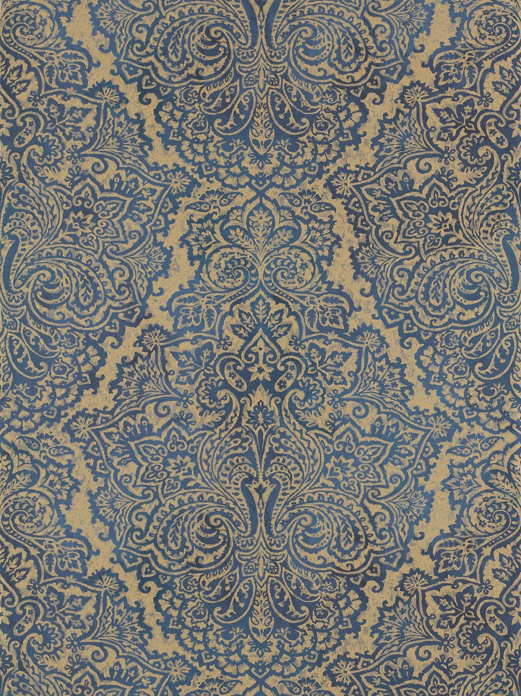 Adapted from an existing Harlequin design, but given a very modish slant, Aurelia is a majestic paisley motif, which resembles tooled leather embellished with metallic elements.