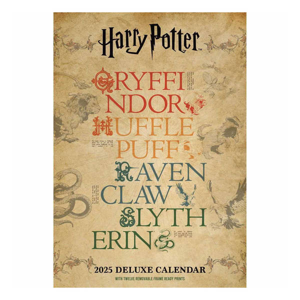 Prepare for the coming year with the officially branded Harry Potter Deluxe 2025 Calendar. This item is constructed primarily from quality paper stock, offering durability for daily reference throughout the year. The thoughtful design incorporates several convenient features intended for simple use across the 2025 schedule.