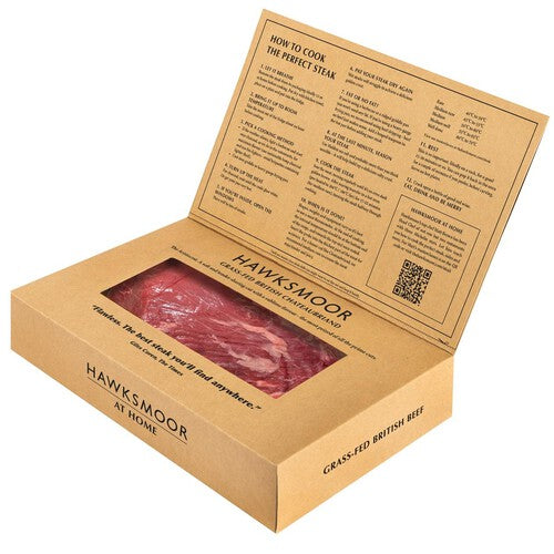 If the weather allows, start on the barbecue over white hot coals. If not, use a cast-iron griddle or heavy-gauge frying pan and get very hot (if using a frying pan add a nugget of beef dripping). Season generously with Maldon sea salt just before cooking and turn the steak regularly until it forms a delicious dark golden brown crust. Then transfer to a pre-heated oven (200°C / 180°C fan) for 17-22 minutes (for medium rare), turning halfway through cooking. Use a temperature probe to hit your desired cuisson (guideline temperatures included on packaging).