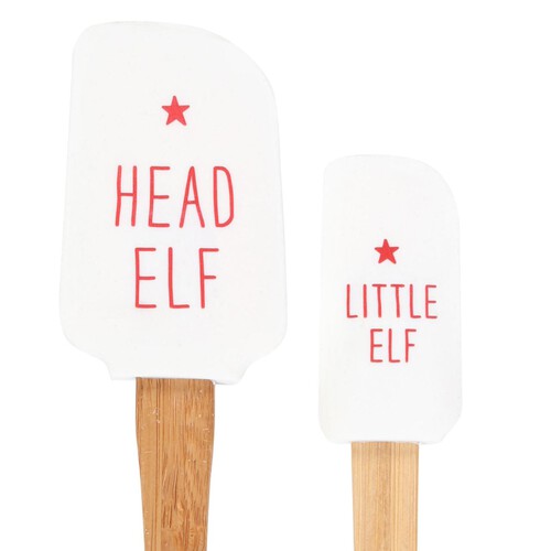 This two-piece set features spatulas styled as a Head Elf and Little Elf, ideal for spreading festive joy. They encourage creating warm family memories while preparing holiday meals and desserts. These baking accessories offer both utility and seasonal charm for your kitchen.
