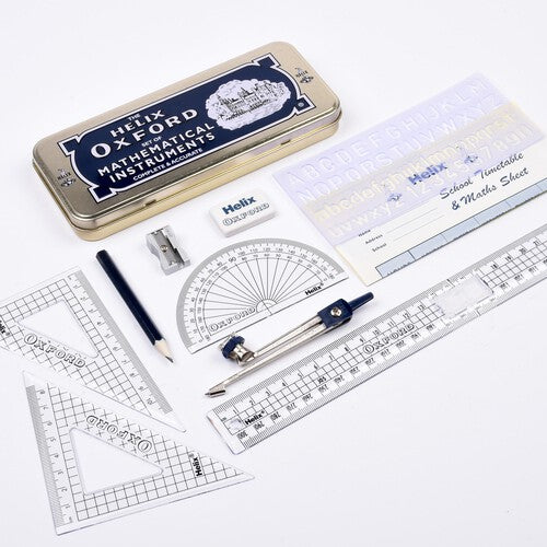 Read MorePremium quality Helix Oxford Maths Set that meets National Curriculum requirements. Robust metal tin to store contents.