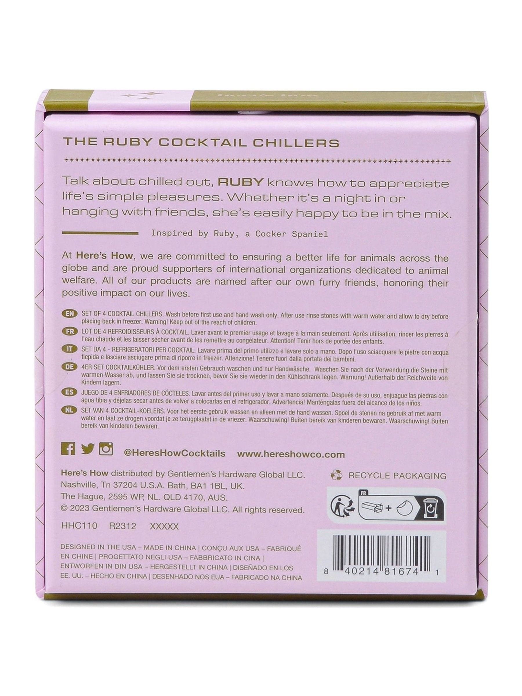 THE RUBY COCKTAIL CHILLERS: Talk about chilled out, RUBY knows how to appreciate life’s simple pleasures. Whether it’s a night in or hanging with friends, she’s easily happy to be in the mix. Inspired by Ruby, a Cocker Spaniel. Size: ONE.