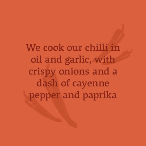 We cook our chilli in oil and garlic, with crispy onions and a dash of cayenne pepper and paprika