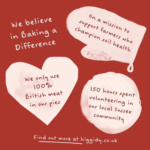 All-butter shortcrust pastry with tender, slow-cooked British beef and carrots, in a rich Sussex ale gravy, hand-finished with an all-butter puff pastry lid, topped with cracked black pepper and brown linseeds.