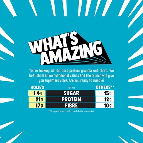 Holie's Granola Protein Crunch offers a satisfying, nutrient-dense start to your day. This crunchy blend avoids unnecessary additives while focusing on whole ingredients for sustained energy. It provides a substantial 20% protein content derived naturally from its mix of nuts and seeds.